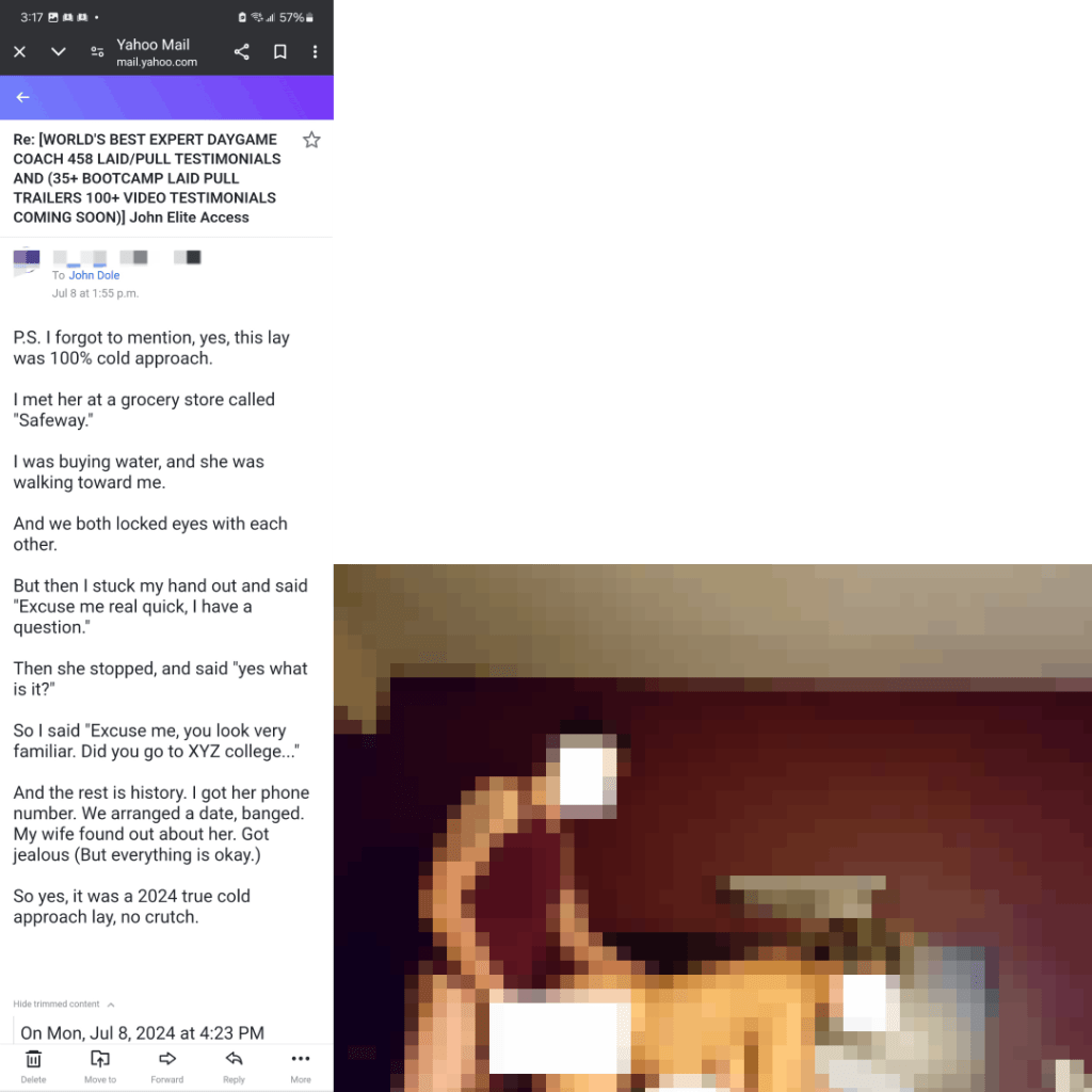 But there are some students like this Italian guy who banged super stunners, better looking than what their students gets. When other coaches are jealous and can’t beat me in terms of students laid, they will try to dismiss the screenshots. They are all real, I can even scroll on the phone and record this and show what is said before and even afterwards. I have thier paypal invoices. Also screenshots of the inner circle where other students are congratuating them. Idiot.
