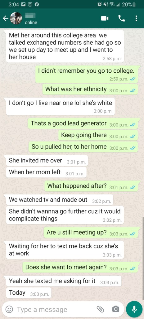 If it is a win/win, the student is a good fit… The Asian Chinese student will be a future testimonial. I am the only daygame coach in the world with Covid 19 daygame testimonials… don’t you have lower self esteem training elsewhere?