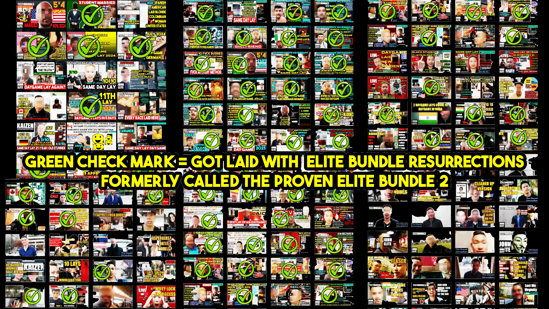 There is a proven track record for those with a green checkmark. They got laid with the Elite Bundle 2. The other ones either got a Elite Access seperately, or took a bootcamp.
