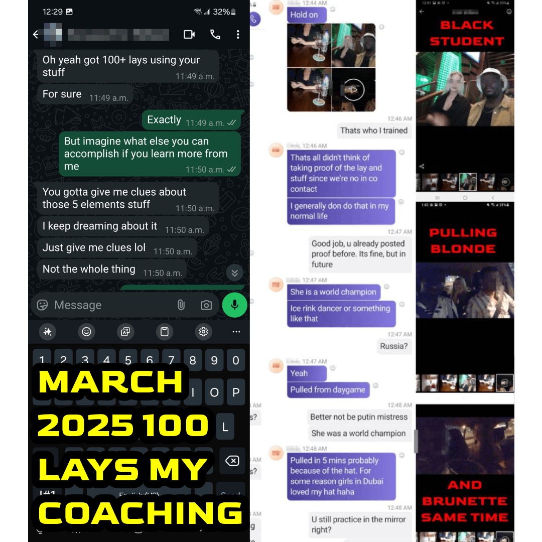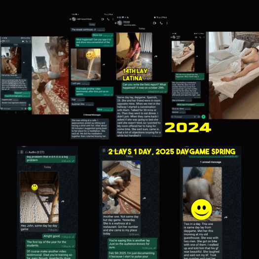 I was the only one getting students laid for daygame in the last 2 years. I got 56 laid and pulled testimonials in 2024 alone. Here are some of it.