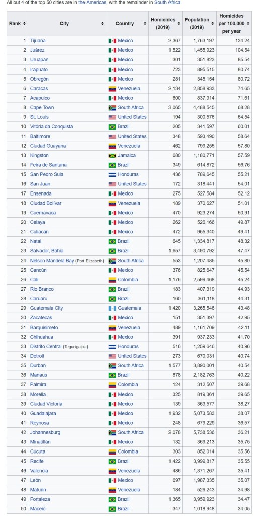 IF I’M WRONG, THEY ARE EMPHATIC, WELL LESS SEE.. 50 MURDER CAPITALS OF THE WORLD…