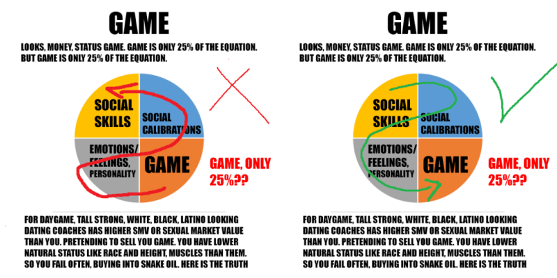 That’s when I realized that the secret to get them to listen RSD was toxic was that social skills is 2.5 points, social calibrations was 2.5 points. Emotional control is 2.5 points, game is 2.5 points. That makes 10 points. Why not focus on the first two instead so you get 5/10 easily?