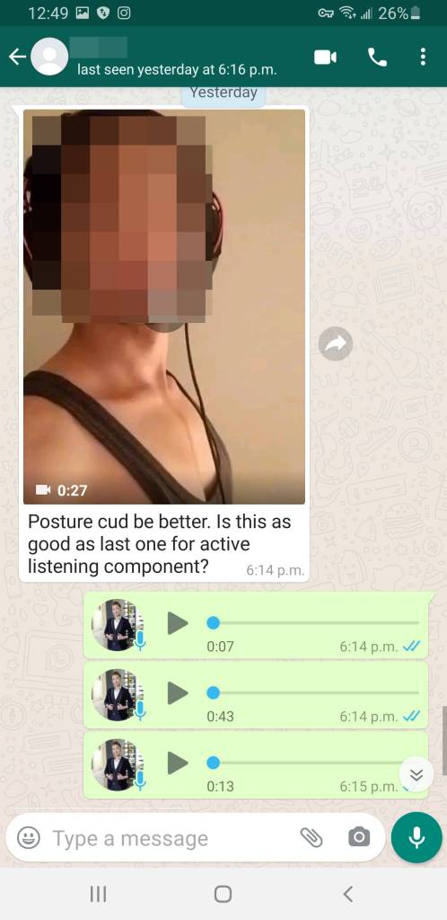 OUT OF THE BODY LANGUAGE, HE WAS WORKING ON ONE OF THE THREE THINGS.. ACTIVE LISTENING.. ITS IMPROVED DRAMATICALLY…