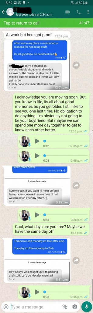 - the next 6, just to show him his watch time, or overall time was short, suggested changes, always the same shit for Asians… which was interupting her, ego tripping, narcissism, not interested in her, talking super fast with cortisol..