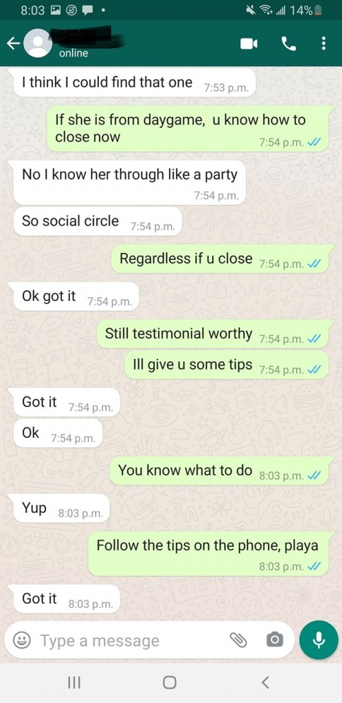 - I’ll list some points so it is easier to read… he never got laid from any PUA stuff, I had to get him laid, even if I can’t count this as a testimonial count. At least I could make a post about it, or a Youtube Live about it….