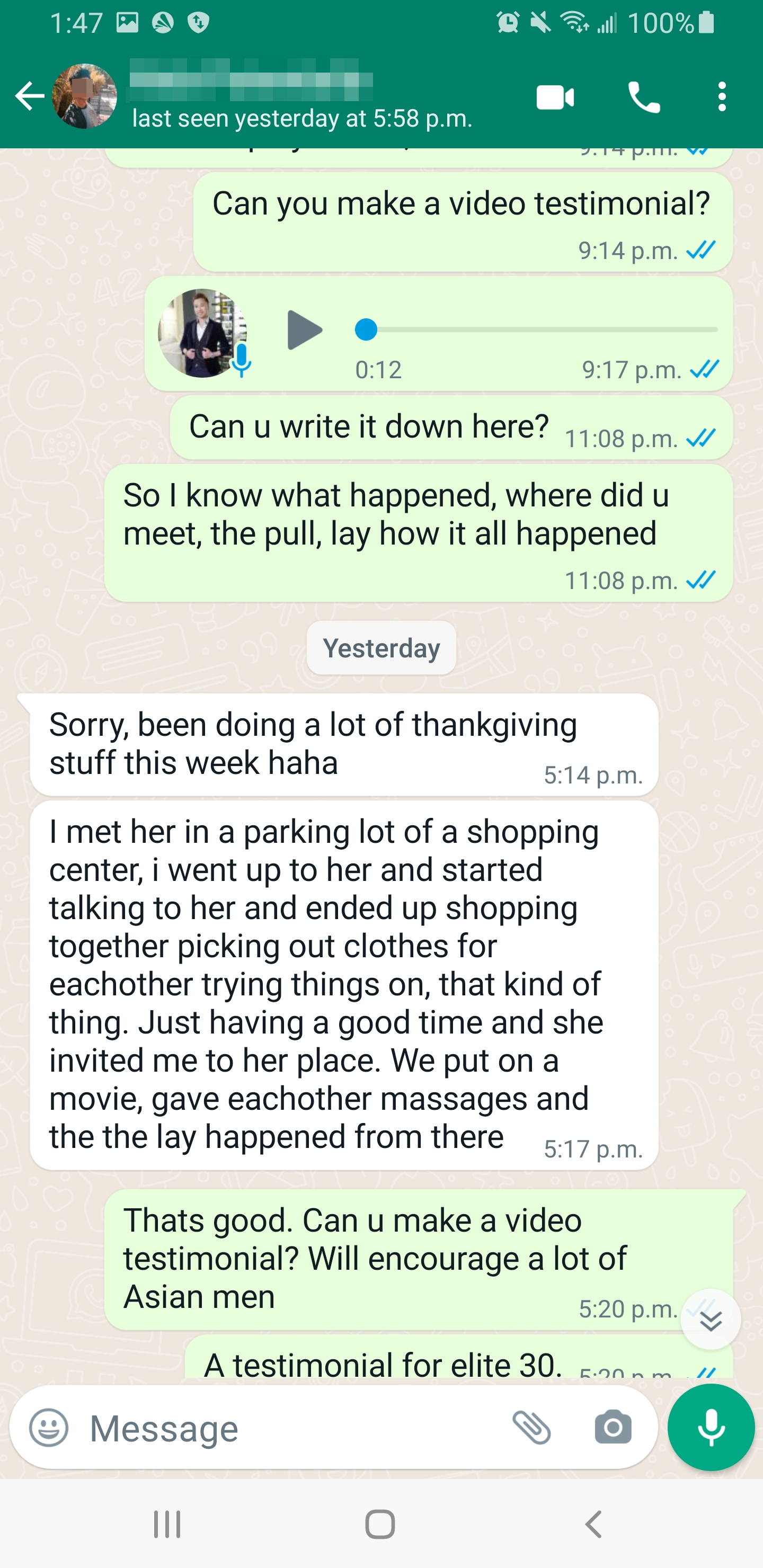 ONE STUDENT HAD OVER 150 LAYS. HE STARTED TO TRAIN WITH ME AROUND 33 LAYS. REGARDLESS, HE WAS UNSTOPPABLE LATER. HE SENT ALL THESE PICS SO I WOULD ONE DAY BE ABLE TO USE FOR MY TESTIMONIALS. THERE WAS A LOT OF POLITICS WHEN IT COMES TO PUAS. HE GOT 7 LAYS IN A ROW AFTER MY COACHING. THEN HE KEPT GETTING LAID.. HE FINALLY HAD ENOUGH BRICKS, THEN IT BECAME EASIER…