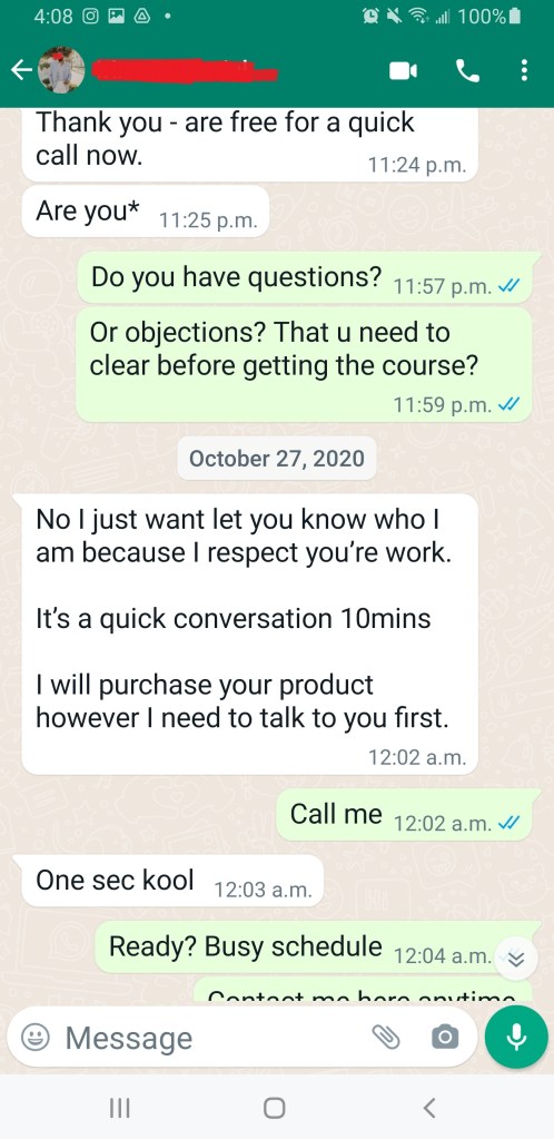 HE WANTED TO TALK ON THE PHONE TO TELL ME EVERYTHING I TAUGHT IS EXACTLY WHAT HE DOES…