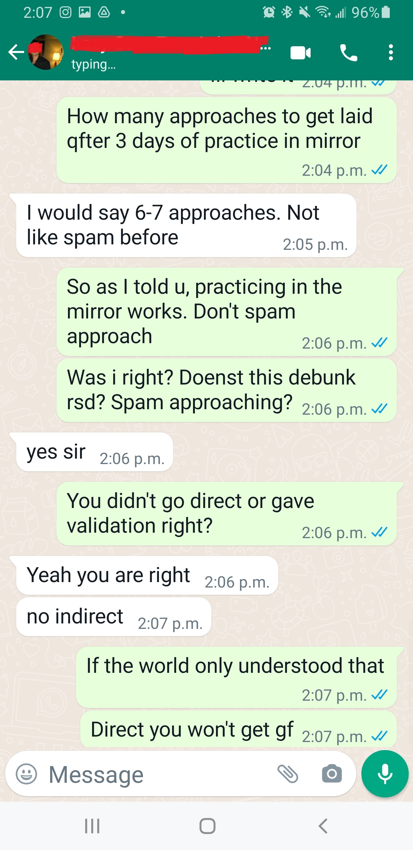 IF YOU WANT TO LEVEL UP, THEN PRACTICE IN THE MIRROR. THEN SEND IT TO ME ON SKYPE. 6-7 approaches, not 6000 like before… when he finally fucking use the fucking mirror and corrected the issues one at a time… THIS DEBUNKS ALL RSD CONCEPTS. I DIDN’T KNOW HE WAS A RSD VICTIM UNTIL HE MENTIONED IT IN HIS LAID TESTIMONIAL..