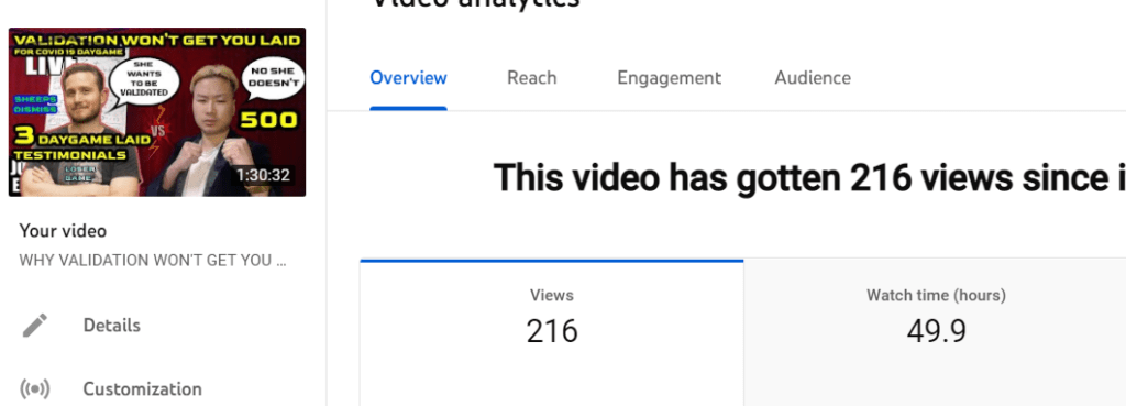MY LAST VIDEO HAS 271 VIEWS MAKING THIS…. BUT IT ALSO HAS 50 HOURS OF WATCH TIME FOR SO FEW VIEWS, SO SOMEONE IS WATCHING MY VIDEOS. SOME VIDEOS HAS 100 HOURS…..