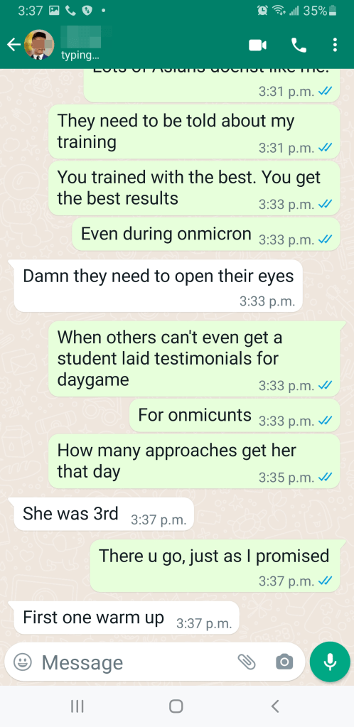 Asians are addicted to bootcamps… since they are too low functioning to do daygame with just my products, using the Skype