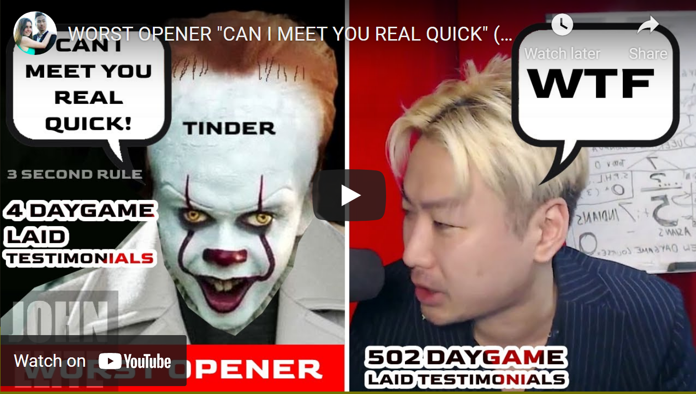 WATCH THIS VIDEO. WORTHLESS OPINIONS BACKED BY 4 LAID TESTIMONIALS FOR DAYGAME… “BLAZERS ARE TRY HARD.” (THE ONLY ONES THAT HAS TO TRY HARD ARE THEIR STUDENTS. WHO GETS REJECTED 100X A DAY IN DAYGAME SAYING CAN I MEET YOU REAL QUICK)