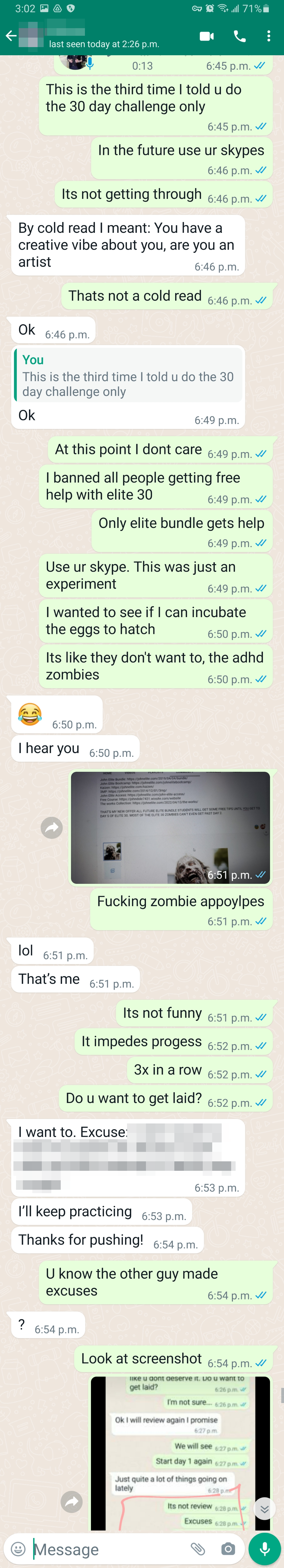 You let the Mystery Method guys, RSD twist your zombie brain. gaslighting you with bullshit