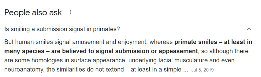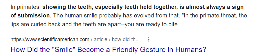 JOHN YOU SAID IN THE VIDEO SMILING IS A SIGN OF SUBMISSION IF FULL TEETH..