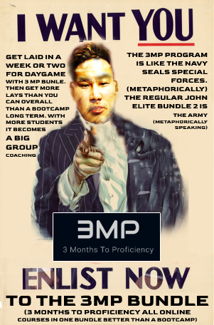 I EXPECT EACH OF THE 3MP SPECIAL FORCES METAPHORICALLY SPEAKING TO GET 3 – 10 LAID TESTIMONIALS EACH. I WANT OVER 50 STUDENTS PER SEASON LIKE SPRING, SUMMER, FALL, ALL WORKING TOGETHER IN A GROUP TRAINING
