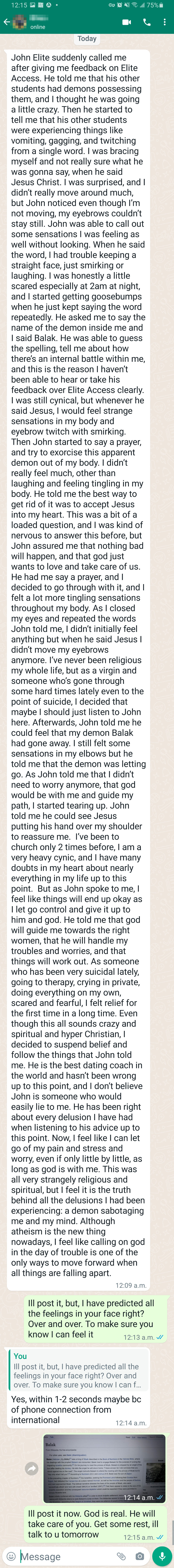 - I THINK A LOT OF OTHER DATING COACHES ARE POSSESSED TOO. THIS INDUSTRY IS ATTRACTING VERY STRONG WORSHIP, BAD ENERGY. I WAS PLACED HERE TO TAKE THIS ON ENTIRELY. HELP PEOPLE.