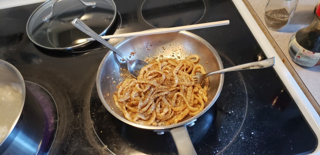 I SHIT YOU NOT, THE LEFT IS A SOFT SHELL TACO. I MADE FROM GROUD BEEF FROM A CAN, RICE AND I MADE MY OWN TORTILLA FLOUR. IN THE MIDDLE I MADE MY OWN PIZZA FROM SCRATCH. ON THE RIGHT I MADE ALL THOSE NOODLES ENTIRELY HAND MADE. NO JOKE… ITS ALL FROM SCRATCH. I EVEN FREEZE THE DOUGH TO MAKE IT.