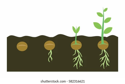 ONCE THE SEED IS GERMINATED, IT SPLITS APART AND GROWS