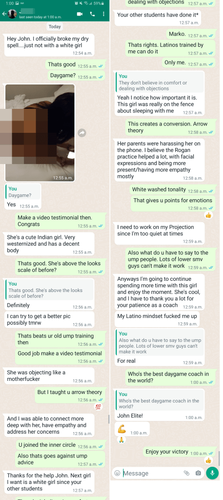 Sexualizing it doesn’t work for low SMV students, it never will. Even the millionare chinese guy used that system and he got curb stompped. Then I coached him becase this half Indian said to go to that company for training. I was so pissed off, knowing my former student also coached for them as an instructor.. I got my chinese student 15 lays in a row. 5 models, 4 white girls 2 actresses.
