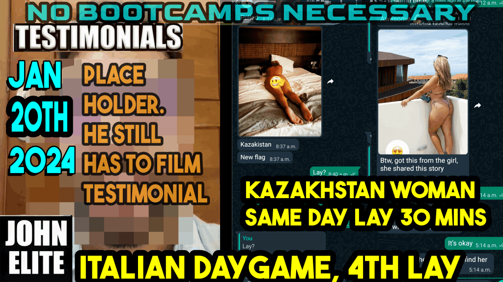 This is key because Elite 30 has the most laid testimonials in the world for my daygame course with 2024, 2023 laid testimonials too and before.