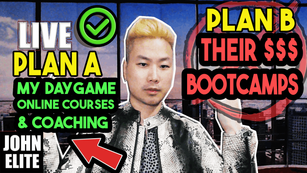 Hey, did you know that Bootcamps are plan b, which is your secret back up plan? However, plan a is my courses like elite 30 elite bundle 2 kaizen and 3MP or 3 months to proficiency which does not need to be taught in person to still get you laid.