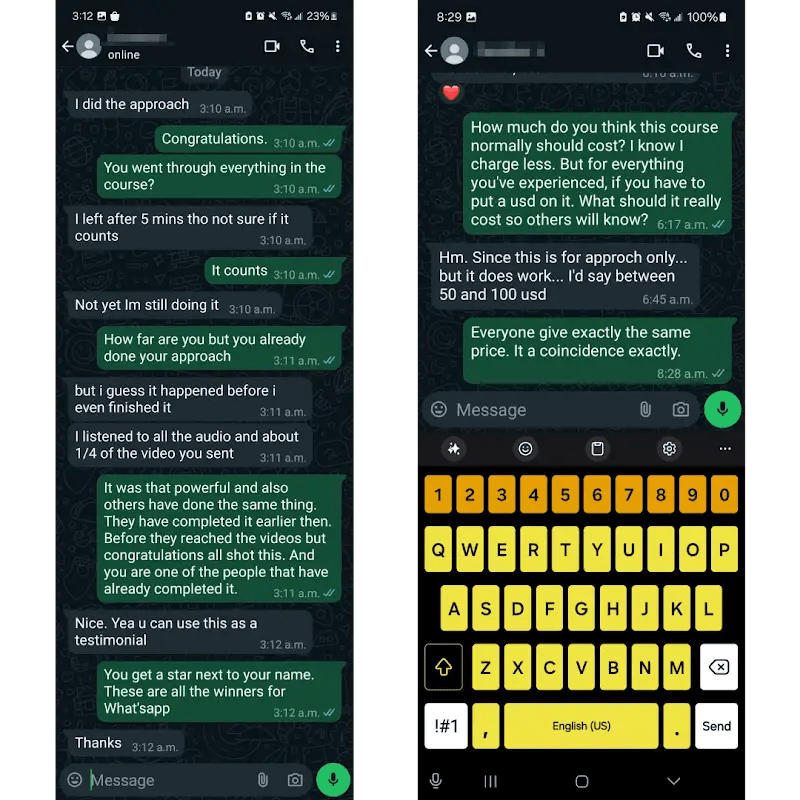 This is an Indian guy from India who works in London. He is an engineer who is always super busy. He upgraded from Elite 30 to Elite Bundle 2, but he needs to use his Elite Access more. However, he did make an approach as I asked him. He said this: “I completed it this morning. It is so good, mind-blowing. I didn’t contact you because I’m traveling today and tomorrow, long flights.”
