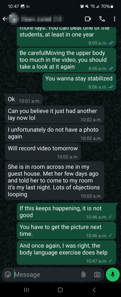 He didn’t post the Ukrainian because he will travel to be with her again in the future. He did get the lay.