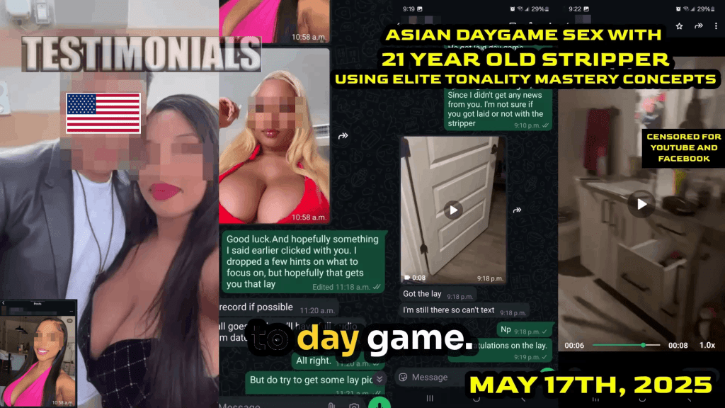 And yes, he got her through pure Day Game—not at a strip club, not through some backdoor number close, just real skills in the field.