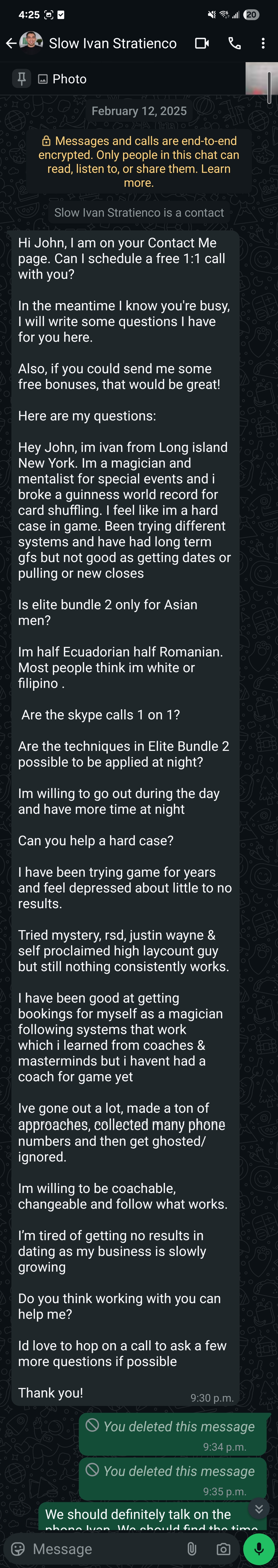 In the screenshot he said told not to study the course material and singing and breathing for a week. Shows he only went through my 10 minute consultation whatsapp training and has no idea what is in my digital courses. Yet speculates on it.