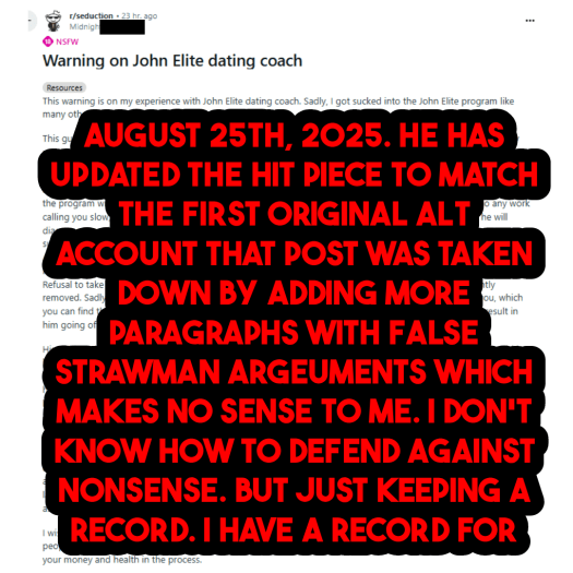 I HAVE 666 TIMES MORE THAN REDDIT’S 1 LAID TESTIMONIAL THIS YEAR FOR THEIR SEDUCTION FORUM. NONE OF YOU GUYS HAVE ANY CREDIBILITY TO GIVE ADVICE. YOUR STUFF ISN’T TRANSFERABLE, IT NO LONGER WORKS IN 2025 AND 2024.