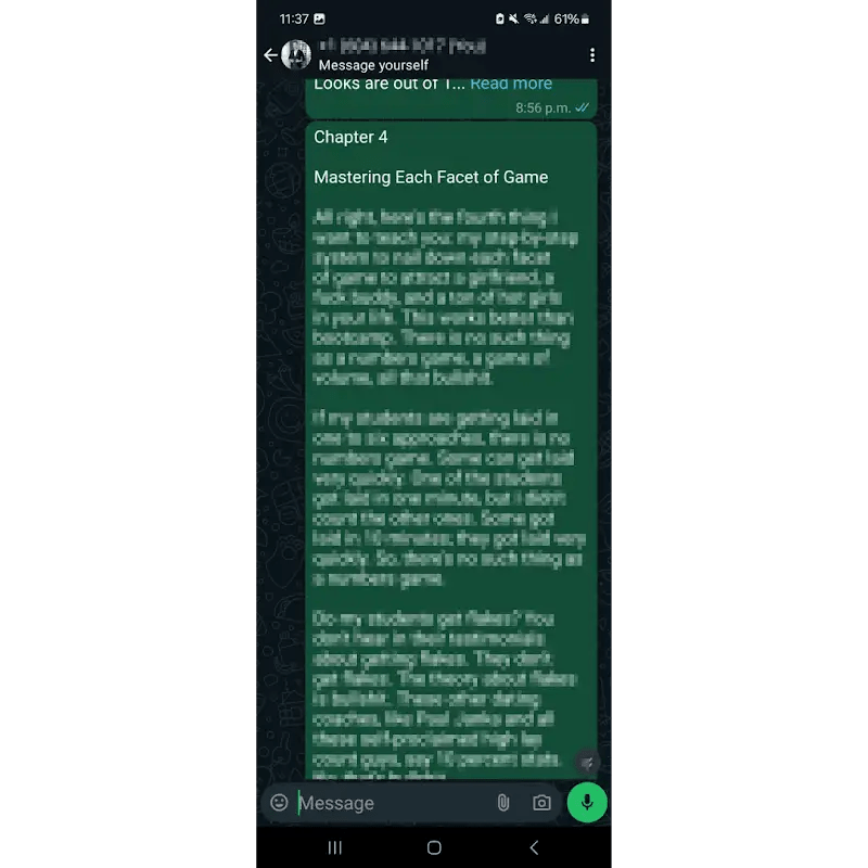 1. For just $5, youโll get access to a 6-chapter booklet hosted exclusively on WhatsApp, with 6 long written notes.