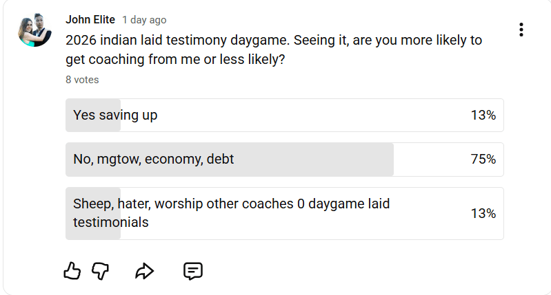 When I put a community poll out there, I only saw like eight votes, and most of the people said they have money problems, they’re turning MGTOW, or men going their own way.